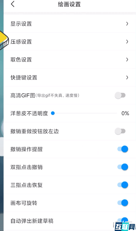 3. 点击【绘画设置】,点击【压感设置】,滑动按钮就可以开启笔压了。