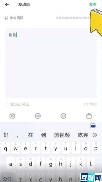 3. 输入动态的内容,再点击右上角【发布】就可以了。