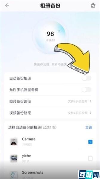 2. 选择【相册备份】,滑动按钮开启【自动备份相册】就可以了。