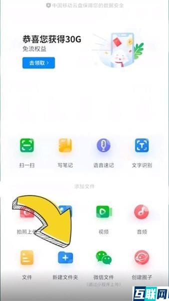 1. 首先打开中国移动云盘,点击页面右下角加号,