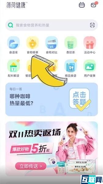1. 首先打开薄荷健康,点击【食物榜单】,