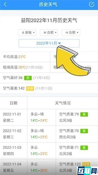 2. 点击【历史天气】,点击倒三角箭头,