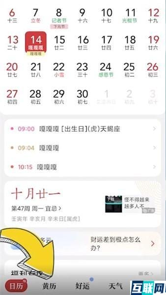 1. 首先打开中华万年历,点击页面下方【黄历】,
