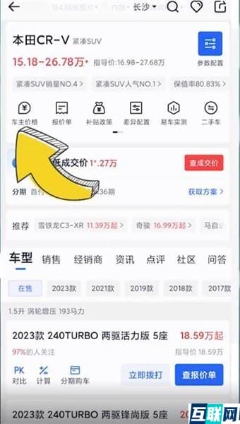 2. 点击喜欢的车型进入,点击【车主价格】,就可以查看详细成交价了。