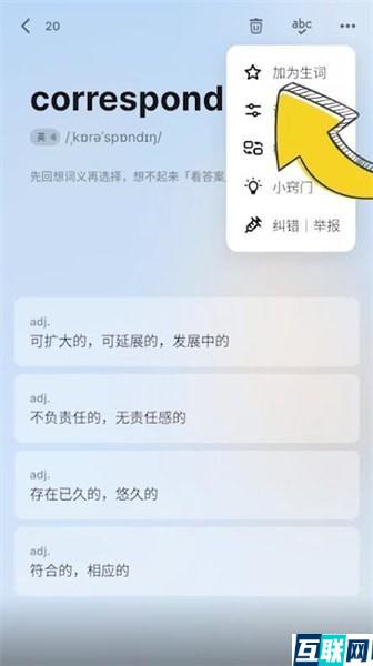 2. 点击页面右上角三点符号,选择【加为生词】就可以了。