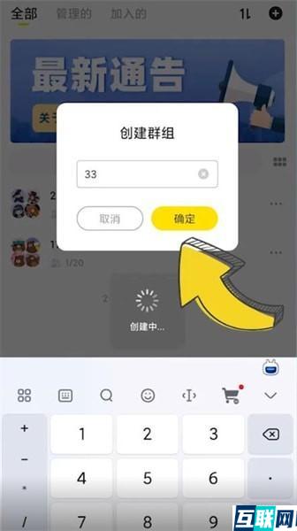 2. 选择【创建群组】,输入群组的名称,再点击【确定】就可以了。