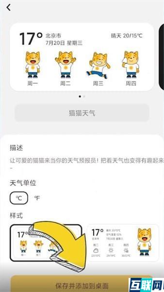 2. 选择天气显示状态的类型,点击【保存并添加到桌面】就可以了。