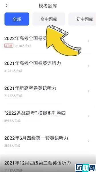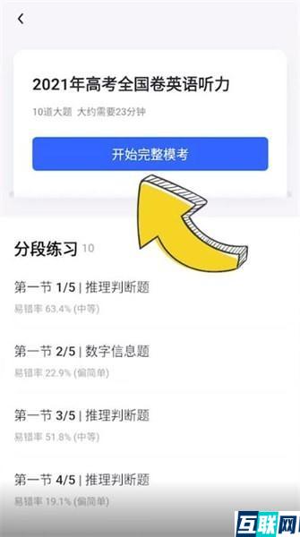 3. 点击听力试题,点击【开始完整模考】就可以了。