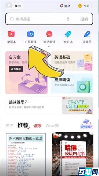 1. 首先打开网易有道词典,点击【拍照翻译】,
