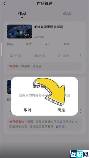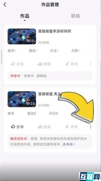 2. 点击【作品管理】,点击视频右下角三点符号,