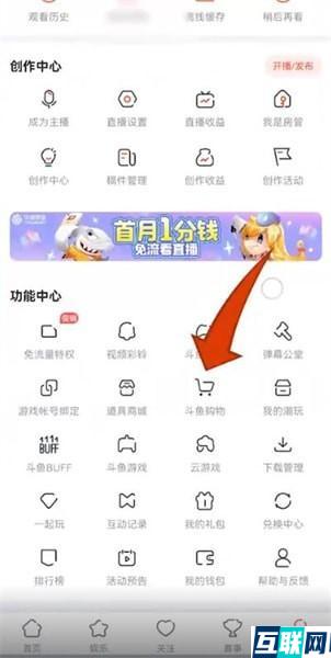 2. 在我的主页选择功能中心下面的【斗鱼购物】,选择你想买的产品就可以了。