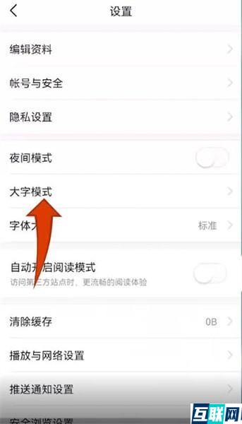 2. 点击右上角的设置按钮,在设置界面选择【大字模式】,