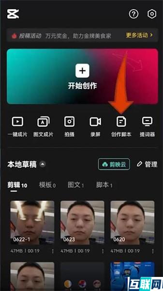 1. 首先打开剪映,在首页点击【创作脚本】,