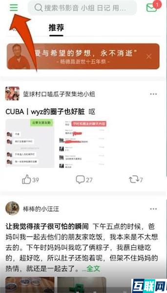 1. 首先打开豆瓣,点击左上角的三条横线。