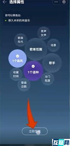 3. 然后设置好歌手,曲风,语种等要素,点击【立即生成】,便可以自动生成你喜欢的歌单了。
