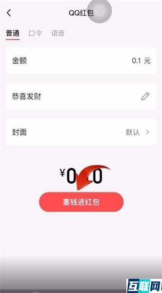 2. 选择红包类型,接着输入红包金额,祝福词,并选择好红包封面,点击【塞钱进红包】,