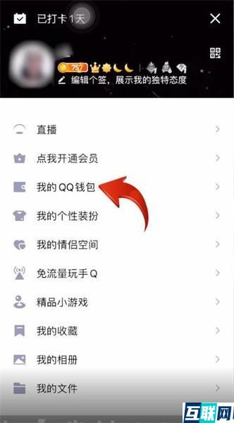 1. 首先打开手机qq,点击左上角个人头像图标进入侧边栏,然后点击【我的QQ钱包】选项进入QQ钱包页面,