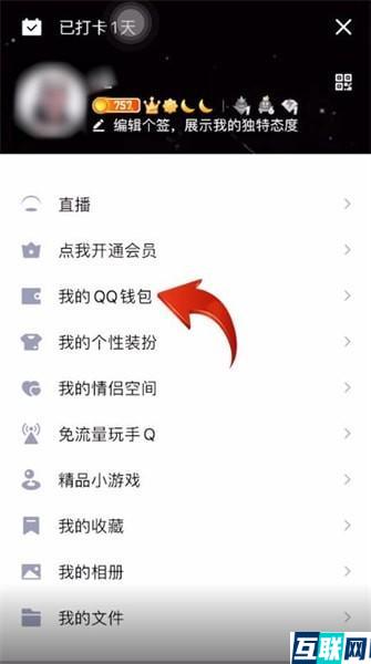 1. 首先打开手机qq,点击左上角个人头像图标进入侧边栏,然后点击【我的QQ钱包】选项进入QQ钱包页面,