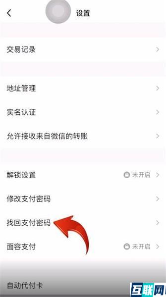 2. 接着点击右上角的【设置】图标,选择【找回支付密码】选项,