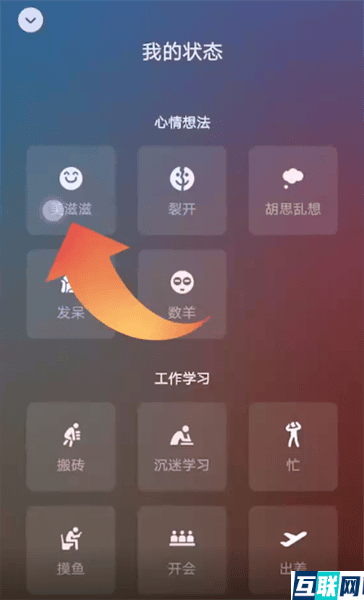 2. 在昵称栏下点击“+状态”,选择一种分类点击,然后输入文字,
