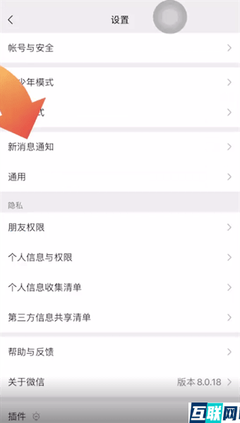2. 接下来点击新消息通知选项,