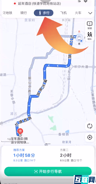 2. 这时点击底端路线,选择步行,