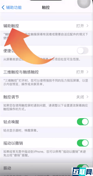 2. 然后在辅助功能页面点击触控选项,接下来再点击辅助触控,