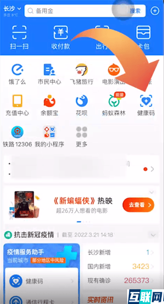 1. 想要查看疫苗接种记录的话,首先打开支付宝app,在首页点击健康码选项,