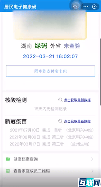 3. 接下来即可在新冠疫苗栏下查看到疫苗接种记录了,点击获取最新数据可以查看最新接种数据。
