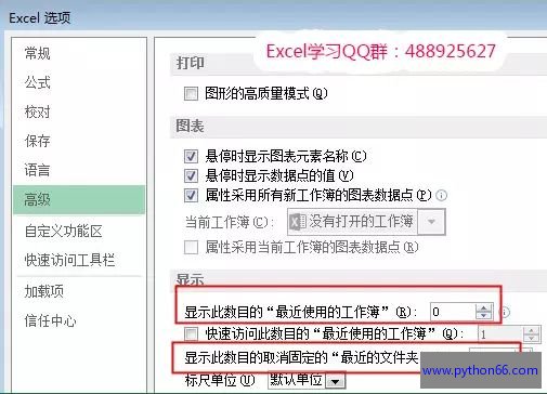 当您发现Excel软件在“显示”下的“显示此数目的‘最近使用的文档’”列表灰色不可用,如下图一样,你该如何办?