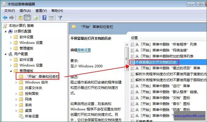 具体操作:开始——运行(或者按win + R键,win就是有四个小方块的那个键盘),输入“gpedit.msc”,(如果提示找不到文件gpedit.msc,请自行参考网上的解决>,参考博文 一篇不行就多找几篇,学会研究)依次打开用户配置→管理模板→开始菜单和任务栏,在右面设置框中选中“不保留最近打开的文档记录”双击设置,重新设置为“未配置”。同样,“退出时清除最近打开的文档记录”项,双击,也重新设置为“未配置”。