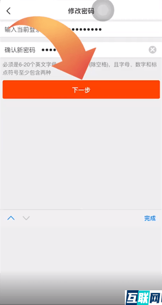 4. 接下来输入当前登录密码,再输入新密码,点击下一步就可以更改成功了。