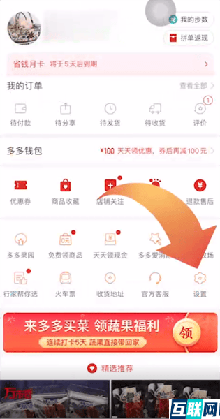 1. 想要解绑手机号的话,首先打开拼多多app,点击首页底端个人中心选项,在个人页面点击设置选项,