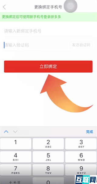 4. 然后再输入新绑定手机号,输入验证码后点击立即绑定就可以解绑成功了。