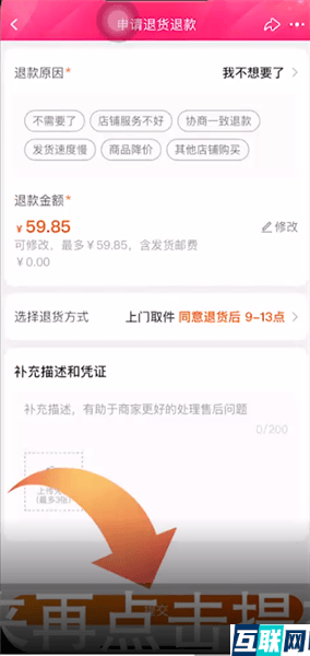 3. 选择退款原因,再选择退货方式,接下来再点击提交申请,