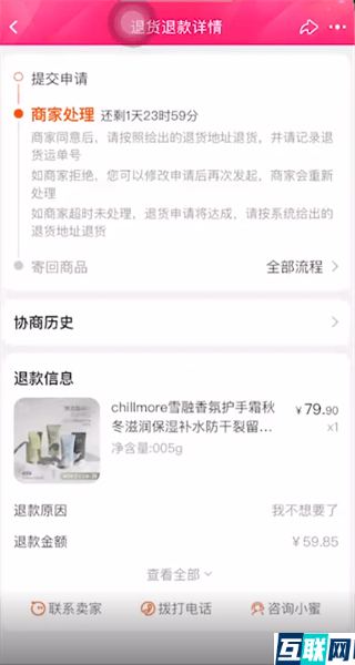 4. 等待商家同意后,按照给出的退货地址退货就可以了。等商家收到货后即会返回退款。