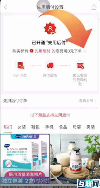 2. 接下来点击先用后付设置,再点击页面感叹号图标,