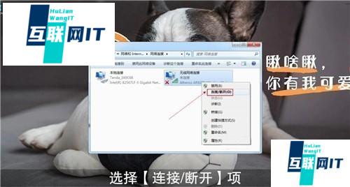 4. 在打开的窗口中,点击无线网卡设备,选择【连接/断开】项。