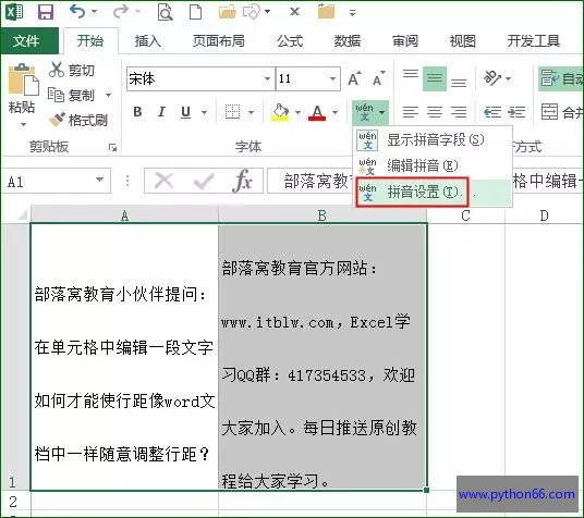 excel单元格行间距怎么调整(拼音设置)