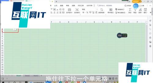 2. 2.鼠标左键点击单元格右下角,拖住往下拉一个单元格。