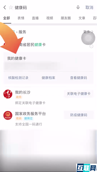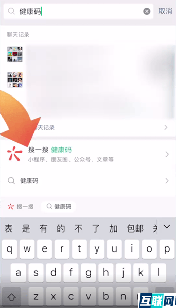 2. 2.然后输入健康码字样,这时点击搜索选项,然后再点击搜一搜健康码,
