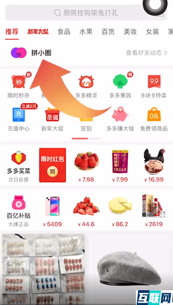 1. 1.首先打开拼多多app,在首页点击顶端的拼小圈功能,