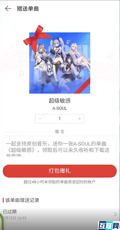2. 2.在已购中可以赠送自己有的单曲,选择赠送寄语后便可通过链接等方式送给他人。同样也可以直接购买自己重复的歌曲来送给他人,其他人接受后便可以将专辑添加到账号中去。