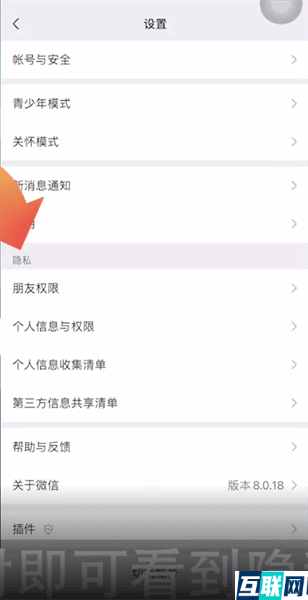 2. 2.这时即可看到隐私版块,可以点击朋友权限、个人信息与权限功能进行设置了。