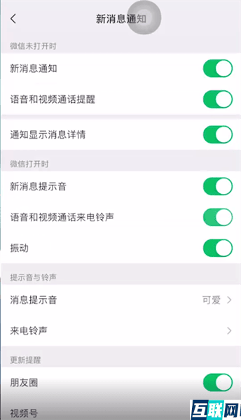 2. 2.点击新消息通知功能,进入新消息通知页面后先开启“新消息提示音”和“语音和视频通话来电铃声”功能,
