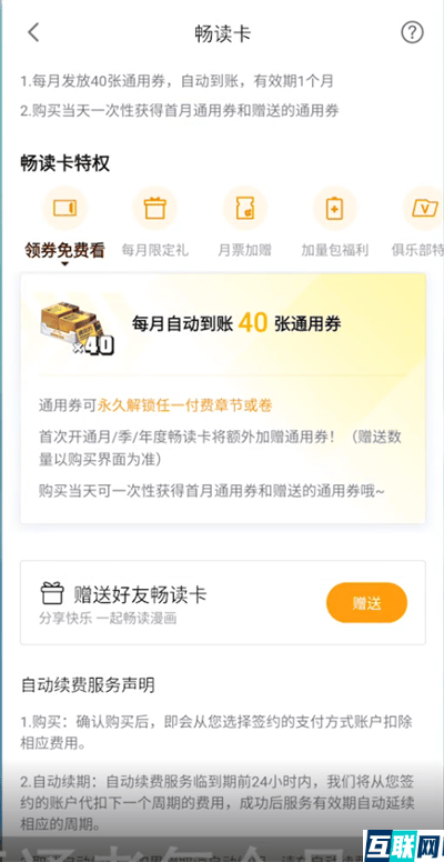 2. 办理畅读卡并不会直接给用户可以使用的漫币,而是给予可以兑换漫画章节的兑换券,该服务更适用于那些有大量漫画观看需求的用户,而只追其中一本漫画的用户就不大需要办理畅读卡。
