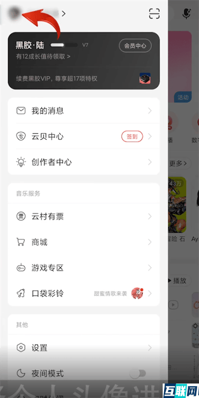 1. 1.在网易云音乐主页面中点击左上方的设置选项,随后选择个人头像进入个人空间。