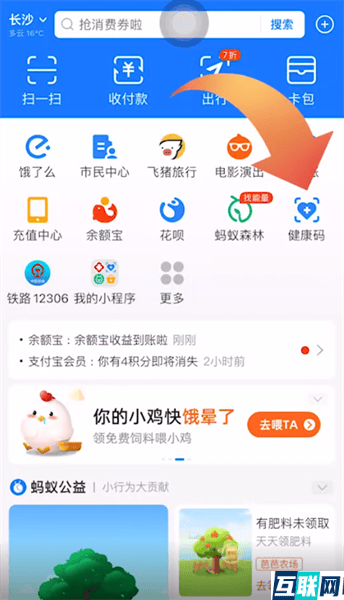 1. 1.想要添加家人的健康码的话,首先打开支付宝app,在支付宝首页点击健康码功能,