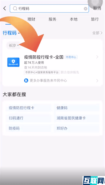 2. 2.输入行程码再点击搜索,这时点击“疫情防疫行程卡”小程序,