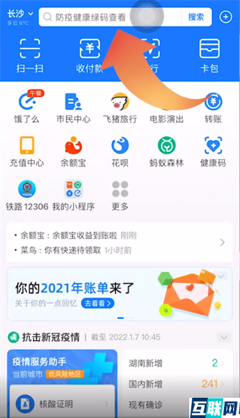 1. 1.想要解绑健康码手机号的话,首先打开支付宝app,在支付宝首页点击健康码功能,